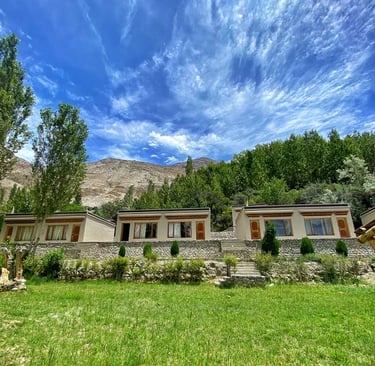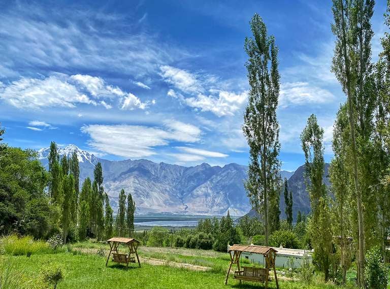 Wake up to panoramic views of the towering Karakoram Mountains and the tranquil river that winds gracefully across the Nubra landscape.